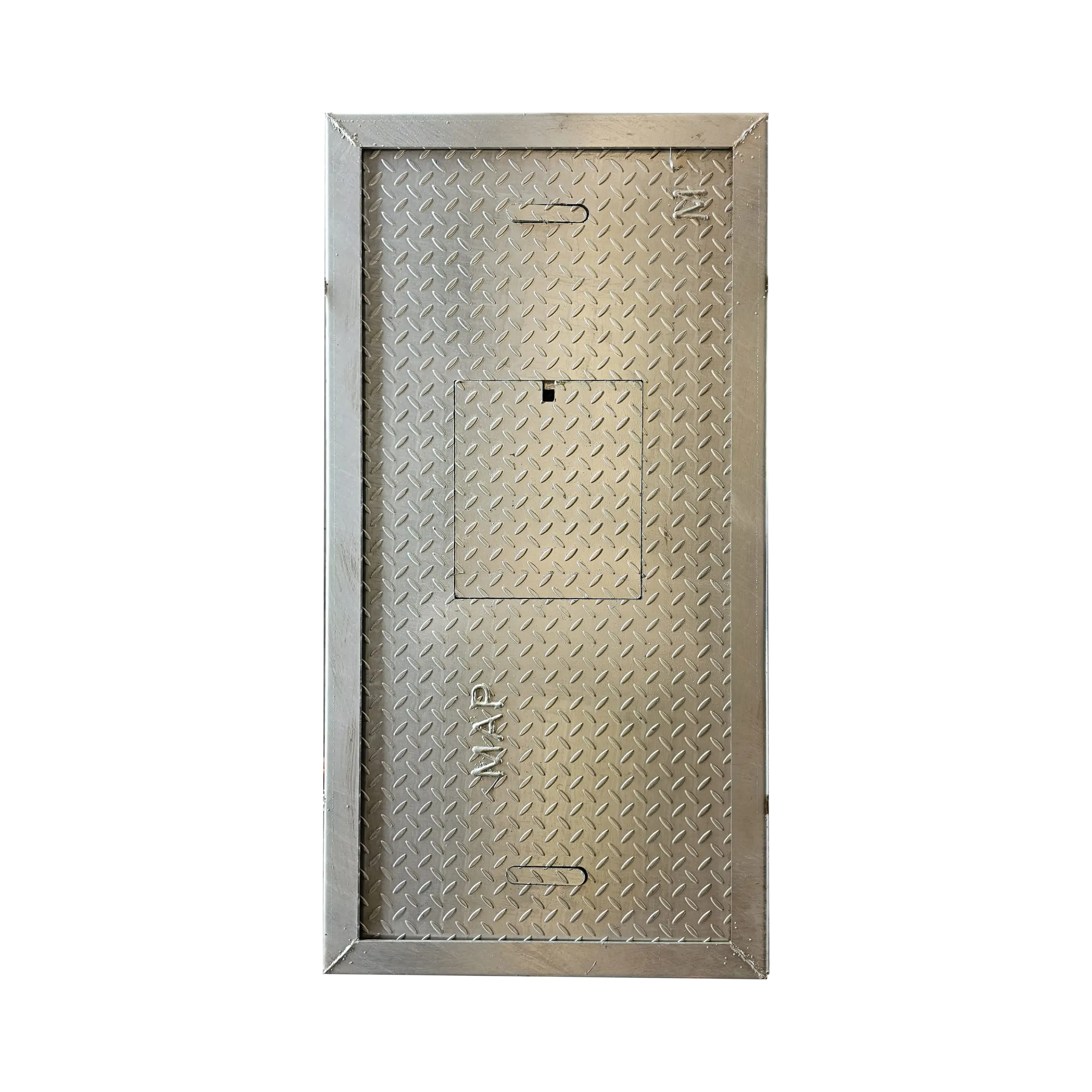 La Tapa Diamantada es una solución metálica diseñada para cubrir cámaras de inspección, ductos y accesos técnicos en instalaciones eléctricas, sanitarias y de telecomunicaciones. Su superficie antideslizante tipo diamantada mejora la seguridad en zonas de tránsito peatonal y vehicular liviano, siendo ideal para espacios urbanos, industriales y residenciales. Fabricada en acero galvanizado o acero al carbono, su construcción robusta y su tratamiento anticorrosivo le otorgan gran durabilidad frente al desgaste, el tránsito y las condiciones climáticas adversas. Puede ser utilizada sola o en conjunto con marcos o anillos para tapas metálicos.